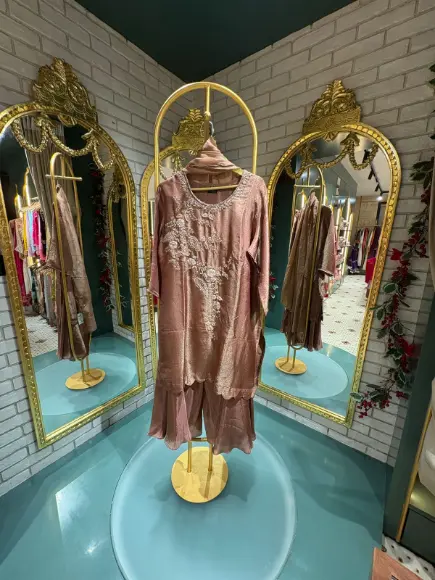 Premium Tissue Silk 3 Piece Suit with Dori Tari Handwork – Elegant Festive Wear (XL Size)